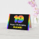 Denna glada och roligt-hälsningskort har numret 19 med ett multifärgat regnbågsspektrum som inspirerar gradienten mönster, tillsammans med meddelandet Lycklig 19:e födelsedagen, och en anpassningsbar mottagare namn. Insidan innehåller ett hälsning-meddelande från anpassadets födelsedag, eller kan kanske tas bort och lämnas tomt om ett meddelande ska skrivas för hand i stället. Ett sådant här glatt, anpassat födelsedag kan skickas i firande på någons nittonårsdag. [~Z0000631]