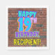 Den här roligtens pappra napkin-designen innehåller meddelandet "LYCKLIG 19TH BIRTHDAY", som har ett dynamiskt, färgstarkt, graffiti-inspirerat utseende, plus en anpassningsbar-mottagare namn. Bakgrunden är en mönster som inspirerats av en tegelvägg. Födelsedag som pappra servetter som denna kan vara roligt till använda vid ett party som hålls för någon som firar sin 19-årsdag. [~Z0000534]