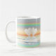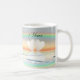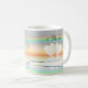 Kaffe mugg med min bild av två pappra tittar hjärtan flytande på vatten under regnbåge. Texten säger "1 år".