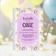 1:a födelsedag Lila Blommigt stripe Party Inbjudningar