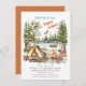 1:a födelsedagsinbjudan - 1:a födelsedag - perfekt för en Lycklig för en bakgårdshuggare, picknicker eller födelsedagsfest utomhus. Den här vattenfärgsdesignen har ett vackert sjö och ett vackert landskap med tält, campingeld och olika campingartiklar. All text kan redigeras.