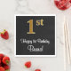 Den här eleganten, sofistikerad och snyggtens födelsedag med den pappra napkin-designen har ett stort ordnummer "1st" med ett imitation/faux-liknande utseende, plus hälsning-födelsedagsmeddelandet "Lycklig 1:a födelsedag" och ett anpassade namn i ett guld-skript. Bakgrunden är svart på färgad. Snyggtens födelsedag sådana pappra blöjor kan användas i en födelsedagsfest till någon som firar sin första födelsedag. [~Z0000516]
