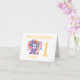 1:a födelsedagekort för hälsning med ett matematiskt kort för elefantdjur för flickor. Lägg till namn och ålder i lila. Mall för första födelsedagskort.