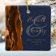 1:a julen - Gift med bränd Orange Agate - marinblå Julgransprydnad Keramik