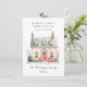 Första julen i ditt nya hem kort. Vacker snötäckt hus med juldekorationer.