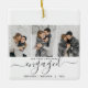 Minneshögtidlighålla din förlovning med denna vackra, moderna keepsaksprydnad. Gråttet lyder: "Vår första jul förlovad", med ord "förlovad" i handskriftsskript i elegant med blomning före och efter. Byt ut de tre exemplen bilder med dina favoritfoton på lodrät och lägg till namn och året.
