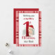 1:a julkortet med en söt julklapp med julhatt och stort rött nummer ett på den berömda bakgrunden. Anpassa texten enkelt eller lämna en del av den tom. - Kate Eden Art