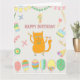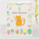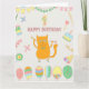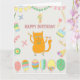 1-års födelsedag. Ballonger och röd katt. Kort