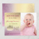Snygg, tjej-, trendig 1-års födelsedagsinbjudan med eget foto av lilla flickan.
