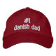 #1 dansk pappa! Visa ditt danska pride med anpassningsbarnas broderade hatt! Danmarks flagga, Dannebrog, är röd med ett vitt skandinaviskt kor som sträcker sig till kant i flagga.
