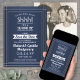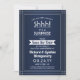 Kan du hålla en hemlighet? Bjud in familj och vänner till en elegant och spännande överraskningsfest för årsdagen med anpassade foton av blå och vita "save the date"-inbjudningar. Bild och all text i denna mall är enkla att anpassa, inklusive meddelandet som lyder "Sss! Det är en ÖVERRASKNING." Designen har en modern rand med ränder på en blå ombre-bakgrund, ett foto som du väljer, klassisk vintage art deco-typografi och stilfullt script-kalligrafi. Grattis på årsdagen till paret på deras stora jubileum!