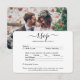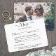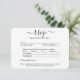 Dela ett av dina förlovnings- eller bröllopsfoton med dessa eleganta och mångsidiga svarsbrevskort. Bild och all text är enkla att anpassa. (TIP FÖR BILDPLACERING: Ett enkelt sätt att centrera ett foto exakt som du vill är att beskära det innan du laddar upp det till Zazzle-webbplatsen.) Kortet innehåller måltidsval, födoämnesallergier, önskan om sång och möjlighet att svara online via en webbplats eller e-postadress. All svarsinformation kan anpassas eller raderas. Den svart-vita designen har modern minimalistisk typografi, handskriven kalligrafi och 1 bild efter eget val. Detta kort är ett stilfullt sätt att be bröllpsgästerna vänligen svara på er kommande speciella dag.
