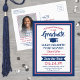 Dela de glada nyheterna om en kommande examensfest med anpassade röda, vita och blå foton på "save the date"-inbjudningskort. Bilden och texten på denna mall är enkla att anpassa med examenens namn, årskurs och andra meddelandedetaljer som du väljer. Den patriotiska designen har en elegant kant, stilren modern kalligrafi, klassisk vintage-typografi och ett favoritfoto, till exempel en seniorbild eller en bild från examensceremonin. Dessa stilrena examenskort är ett elegant sätt att dela en speciell dagsfirande med familj och vänner. Grattis till examen!