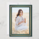 Oavsett om vänner och familj utövar social som avstånd eller bara bor långt bort, koppla online till dem med en snyggtens virtuella studentfest. (IMAGE PLACEMENT TIP: Ett enkelt sätt att centrera ett foto exakt som du vill är att flytta det till skörd innan du laddar upp det till Zazzle-webbplatsen.) Denna moderna grönt, guld och vita inbjudan gör det möjligt att ett foto- och inbjudan-gäster till ett långt avstånd via zoomvideokonferenser, direktuppspelning på Internet eller ett virtuellt videospel. All text är också enkel att anpassa för en bil som kör i eller kör genom studenten parad. Om du bara föredrar ett annonskort ändrar du bara texten till att inkludera valfri information, t.ex. föräldrars namn, speciella arvoden, graderingstitel, student framtida planer och kontaktinformation eller favoritinspirationstecken. Mallen kan också innehålla ett personligt meddelande om det här är en omschemalagd händelse på grund av en annullering eller ett uppskjutande. Om det finns text som inte är önskad raderar du den. Utformningen har en bakgrund i grönten, en faux metallisk folie, en snyggt modern vit typografi, en handskriven kalligrafi i stil och ett foto som du själv väljer, t.ex. ett överordnat bild eller en bild från startceremonin. Observera att guld är tryckt på färg, inte på folie. Det här eleganten-kortet är ett chic för att påbörja din speciella dag i firande. Grattisar till student!