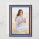 Oavsett om vänner och familj utövar social som avstånd eller bara bor långt bort, koppla online till dem med en snyggtens virtuella studentfest. (IMAGE PLACEMENT TIP: Ett enkelt sätt att centrera ett foto exakt som du vill är att flytta det till skörd innan du laddar upp det till Zazzle-webbplatsen.) Denna moderna marinblåa, rosa och vit inbjudan gör det möjligt att ett foto- och inbjudan-gäster till ett långt avstånd evenemang via zoomvideokonferenser, direktuppspelning på Internet eller ett virtuellt videospel. All text är också enkel att anpassa för en bil som kör i eller kör genom studenten parad. Om du bara föredrar ett annonskort ändrar du bara texten till att inkludera valfri information, t.ex. föräldrars namn, speciella arvoden, graderingstitel, student framtida planer och kontaktinformation eller favoritinspirationstecken. Mallen kan också innehålla ett personligt meddelande om det här är en omschemalagd händelse på grund av en annullering eller ett uppskjutande. Om det finns text som inte är önskad raderar du den. Utformningen har en marin blå bakgrund, metallfolie i ro guld, modern vit typografi i snyggt, handskriven kalligrafi i stil och ett foto som du själv väljer, t.ex. ett äldre bild eller en bild från startceremonin. Observera att ro guld är tryckt på färg, inte på folie. Det här eleganten-kortet är ett chic för att påbörja din speciella dag i firande. Grattisar till student!