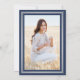 Oavsett om vänner och familj utövar social som avstånd eller bara bor långt bort, koppla online till dem med en snyggtens virtuella studentfest. (IMAGE PLACEMENT TIP: Ett enkelt sätt att centrera ett foto exakt som du vill är att flytta det till skörd innan du laddar upp det till Zazzle-webbplatsen.) Denna moderna marinblåa, vita och silver-inbjudan gör det möjligt att ett foto- och inbjudan-gäster till ett långt avstånd evenemang via zoomvideokonferenser, direktuppspelning på Internet eller ett virtuellt videospel. All text är också enkel att anpassa för en bil som kör i eller kör genom studenten parad. Om du bara föredrar ett annonskort ändrar du bara texten till att inkludera valfri information, t.ex. föräldrars namn, speciella arvoden, graderingstitel, student framtida planer och kontaktinformation eller favoritinspirationstecken. Mallen kan också innehålla ett personligt meddelande om det här är en omschemalagd händelse på grund av en annullering eller ett uppskjutande. Om det finns text som inte är önskad raderar du den. Utformningen har en marin blå bakgrund, faux metallisk folie, snyggt modern vit typografi, handskriven stil-manusgrafi och ett foto som du själv väljer, t.ex. ett överordnat bild eller en bild från startceremonin. Observera att silver är tryckt på färg, inte på folie. Det här eleganten-kortet är ett chic för att påbörja din speciella dag i firande. Grattisar till student!