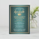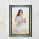 Inbjudan familj och vänner till en elegant högskoleexamen eller högskoleexamen i party med dessa grönt-, vita och mjuka metallinbjudningar till guld. Foto och all text är enkla att anpassa. (IMAGE PLACEMENT TIP: Ett enkelt sätt att centrera ett foto exakt som du vill är att flytta det till skörd innan du laddar upp det till Zazzle-webbplatsen.) Den här inbjudan-mallen är formaterad för en studentfest, men kan enkelt ändras till ett öppet hus eller någon typ av händelse. Om du bara vill ha ett annonskort ändrar du bara texten till att inkludera valfri information, t.ex. föräldrars namn, speciella arvoden, graderingstitel, student framtida planer och kontaktinformation eller favoritinspirationstecken. Utformningen har en teal faux borstad bakgrund av rostfritt stål, guld faux foil studentmössa, snyggt modern typografi, handskrivet manusgrafi för stil och ett foto som du kan välja, t.ex. ett äldre bild eller en bild från startceremonin. Det här snyggten-kortet är ett chic för att påbörja din speciella dag i firande. Grattisar till student!