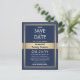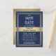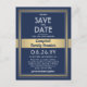 Inbjudan-släktingar för att rädda datumet för en familjeåterförening, picknick, Bq eller party med denna elegant, en modern marinblått, vit och faux guld-folie. Foto och all text är enkla att anpassa. (TIPS FÖR BILDPLACERING: Ett enkelt sätt att centrera ett foto som du vill ha är att skicka det till skörd innan du laddar upp det till Zazzles webbplats.) Utformningen har en valfri bild, en gräns i guld med faux ribbon overlay, snyggt vintage deo inspirerad typografi och chic script calligraphy. En del idéer om ett bild kan komma från sista gången familjen var tillsammans, vintage bild av mor- och farföräldrar/härkomst eller bilder på party. Den här mallen har konfigurerats för en familj party, men kan vara personlig för alla typer av samlingar, t.ex. klassåterförening, konferens eller företagshändelse.