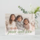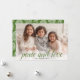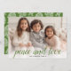 Grönt och vitt - Använda ett foto av vågrät och gör ett unikt och trendig God jul hälsning med ett fuktmönster på baksidan av eleganten. Hälsning visas i ett modernt, studsande kalligrafi som kan ändras för att uppfylla ditt favorittalesätt. Den enkla, minimala designen belyser ditt familjefoto. Om du vill flytta något runt klickar du på knappen Anpassa för att göra ändringar.