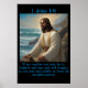 1 John 1:9: Om vi erkänner våra synder är han trogen och rättvis och kommer att förlåta oss våra synder och rensa oss från all ohederlighet. På en poster med Jesus sitta nära lugnens hav och ett ljusblått ram. .