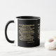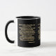 Den här tvåtonsversionen av mugg har ett trendig i serigio-format med den gula färgaden brev-vita konturen som visar den "1 John 2:4-6" KJV-bibelskriptversen över en svart bakgrund. Den här versen refererar till Bok i det andra John-kapitlet som visar 4 till 6 i det här bibelcitattemat från Kung James-bibeln. Behållaren och fälgen är glaserade i motsvarande färg i 11 eller 15 uns stora mikrovågsugn och säker keramikkonstruktion av diskmaskiner.