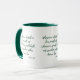 Med det här tvåtonsmönstret mugg visas ett mönster som har ett skript i spellistan med grönt brev som visar KJV-bibelskriptans "1 John 3:6" versa över en vit bakgrund i det här trosbaserade temat. Den här versen refererar till Bok i det tredje John-kapitlet som visar 6e-versen i detta bibelcitat från Kung James-bibeln. Behållaren och fälgen är glaserade i motsvarande färg i 11 eller 15 uns stora mikrovågsugn och säker keramikkonstruktion av diskmaskiner.