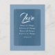 Denna design har med bibelversen 1 Korinthierbrev 13:7, som visas på en rik blå gouachebakgrund. Bakgrunden består av olika nyanser av blått, skickligt blandade för att skapa ett nästan solidt utseende samtidigt som den introducerar subtilt djup genom små färgvariationer. Runt versen finns en charmig ram i blått, prydd med lekfulla vita prickar, som ger en lekfull touch till den övergripande kompositionen.