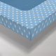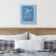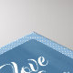 Denna design har bibelversen 1 Korinthierbrev 13:7, som visas på en rik blå gouachebakgrund. Bakgrunden består av olika nyanser av blått, skickligt blandade för att skapa ett nästan solidt utseende samtidigt som den introducerar subtilt djup genom små färgvariationer. Runt versen finns en charmig ram i blått, prydd med lekfulla vita prickar, som ger en lekfull touch till den övergripande kompositionen.