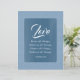 Denna design har med bibelversen 1 Korintierbrev 13:7, som visas på en rik blå gouachebakgrund. Bakgrunden består av olika nyanser av blått, skickligt blandade för att skapa ett nästan solidt utseende samtidigt som den introducerar subtilt djup genom små färgvariationer. Runt versen finns en charmig ram av blått, prydd med lekfulla vita prickar, som ger en fantastisk touch till den övergripande kompositionen.