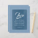 Denna design har bibelversen 1 Korintierbrev 13:7, som visas på en rik blå gouachebakgrund. Bakgrunden består av olika nyanser av blått, skickligt blandade för att skapa ett nästan solidt utseende samtidigt som den introducerar subtilt djup genom små färgvariationer. Runt versen finns en charmig ram i blått, prydd med lekfulla vita prickar, som ger en lekfull touch till den övergripande kompositionen.