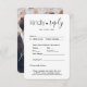 ett av dina förlovning- eller bröllop-foton med den här eleganten och den mångsidiga OSA kort. Bild och all text är enkla att anpassa. (IMAGE PLACEMENT TIP: Ett enkelt sätt att centrera ett foto exakt som du vill är att flytta det till skörd innan du laddar upp det till Zazzle-webbplatsen.) Kortet omfattar måltider, livsmedelsallergier, sång-begäran och alternativ för att svara online via en webbplats eller e-post adress. All svarsinformation kan vara personlig eller borttagen. Den svarta och vita designen har modern minimalistisk typografi, manuell skriptkalligrafi och 1 bild efter eget val. Detta kort är ett snyggt för att be bröllop gäster att vänligt besvara er kommande speciella dag i firande.