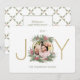 Skicka snyggt glatt hälsning och ett favoritfoto med det här eleganten Julhälsningar kort. All text på den här mallen är enkel att anpassa för att inkludera alla formuleringar, t.ex. God jul, Glad helg, Säsonhälsningar, nyårschecknare osv. (IMAGE PLACEMENT TIP: Ett enkelt sätt att centrera ett foto exakt som du vill är att skicka det till skörd innan det laddas upp till Zazzles webbplats.) Utformningen har ett modernt "JOY"-folie från Faux guld med vattenfärgad holly-krans mot en vit bakgrund, vintage inspirerad till grönland och bär, mönster, handskriven stil-manustypografi och 1 bild efter eget val. Familjen och vännerna kommer att visa chicens personlig kort i kärlek.