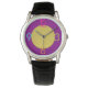 Denna klocka är till för personer med djärva personligheter eftersom den verkligen är utmärkande. Med stora, färgstarka siffror och en lila med två ton och ansikte med guld färgad, skriker det praktiskt taget mode framåt.