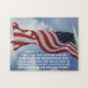 Det inspirerande patriotiska pusslet skildrar den amerikanska flagga och har Bible Verse 1 Timothy 2:1-2, "jag uppmanar därför till att framställningar, böner, avlyssning och thanksgiving görs för alla människor - för kung och alla som har makten, att vi kan leva fredliga och tysta liv i all gudstjänlighet och helighet."_