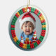 Celebrate your little one’s holiday magic with Santa’s Sweetheart, a custom ceramic ornament that captures the joy of baby’s first (or any!) Christmas. Featuring a cheerful photo framed by festive florals, golden stars, and classic holiday toys like teddy bears and gift boxes, this keepsake is a heartwarming tribute to your greatest gift.