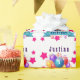 Det är FÖDELSEDAGtid….,Låt oss FIRA! Denna design med dess färgrika ballonger och konfettiar och en fläck som ska personifieras med ett namn- och födelsedagår, är en roligt långt som startar partyet!
