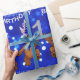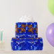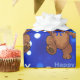 Det gulliga lite bruna nalleinnehav ett glittery numrerar 1 dans i en fodra över denna roliga 1st födelsedaggåva som slår in papper med en festlig blåttljusbakgrund.