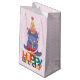 En gullig bebisflodhäst som ha på sig en födelsedaghatt med en stor 1 på den, sitter framme av henne födelsedagtårtan. Den förtjusande 1st födelsedaggåvan hänger lös för din unge gåvor.