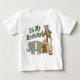 En themed design för safari av en giraff, en apasitta i ett träd, en stor elefant med numrera 1 på den och text det är min födelsedag på koordinerande 1st födelsedagt-skjortor, knäppas, partyinbjudningar, tackkortet och porto.