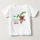 Första födelsedagskjorta för snyggt med den gulliga sock monkey som svänger på en gren. Något att säga "denna lite apa en". Vibrerande rött, bryner och görar grön färger.