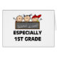 Tre stick figurungar med den stora leendehållen som en handstil stiger ombord, som läser "School är kall!", och svärta text läser "speciellt den 1st klassen" på den 1st grundskolan är kalla T-tröja, muggar, knäppas, magneter, klistermärkear, kort och annan perfekt för barn för objekt som är i den första klassen och första klasslärare!