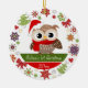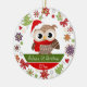 Ugglan är skuggar in av beige och choklad - bryna med en röd santa hatt och scarf. De olika prydnadarna i rött, orange, limefrukt, lila är i bakgrunden. Texterna och ugglan är anpassadet. Baksidaen av prydnaden är har den samma bakgrunden att avbilda, och texterna är anpassadet som väl.