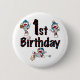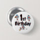 Tre sock monkey som ha på sig blåttbaseballmössor, kastar lite och att glida och up på fladdermöss på vår design för födelsedagen för sock monkeybaseball som 1st presenterar sock monkey och kall text som läser "den 1st födelsedagen".