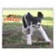 En kalender för tolv månad som presenterar gulliga foto av hundar från thejoyfulspringer.com. Varje foto paras med resumén, upptaktinspiration.