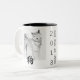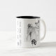 Bläck tvättar målning av den Shiba Inu hunden med den svart hundideogramen. Anpassadet två-tonar muggen (modellera n°3), med år och text. Den kinesiska för tecken elaket "hund" enkelt. Perfekt för att önska det lyckliga kinesiska nya året 2018 för alla eller födelsedagen (folk bördigt hundår). ----- "Är hunden (狗) en av det 12 året cyklar av djur som visas i den kinesiska zodiacen släkt till den kinesiska kalendern. Året av hunden är tillhörande med den jordiska grensymbol戌en. Teckenet som 狗 ser till den faktiska djura stund戌en, ser till zodiacdjur. (...), daterar folket som är fött inom dessa, spänner kan sägas att ha varit bördigt "året av hunden", stunder som uthärdar också det efter elementärt, undertecknar: