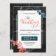 Denna moderna teknik tar sig an botaniska användor koral- och tealhögdagrar med ett unikt skript och geometriskt ram på en svart marmorbakgrund. Baksidan av bröllopsinbjudan innehåller ett område där du kan ladda upp ett foto från anpassningsbarna.