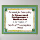 Intyg om uppnående för medicinska utgivare. Perfekt för kvarstående MT eller Student MT-enheter för gradering.
