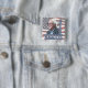 2020 Valet Bernie Sanders stöder politisk knapp med amerikansk Flagga Bakgrund för demokrater, liberaler eller humanitära biståndsarbetare.