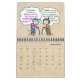 Kalendern innehåller tolv olika humoristiska bilder, skämt och citat.