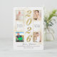 Modern fyrfotsmeddelande från studenten i faux guld löv och vit för student. Mjuk fern löv accents och en ställe för två foton av din pojke eller flicka när de var unga och två aktuella foton med anpassningsbar text. Klass 2022